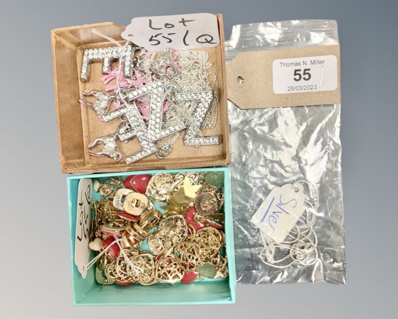 A 19" silver necklace, together with nine pendants on white metal chains, as well as a quantity of various earrings. (Q)