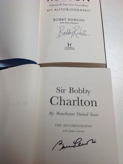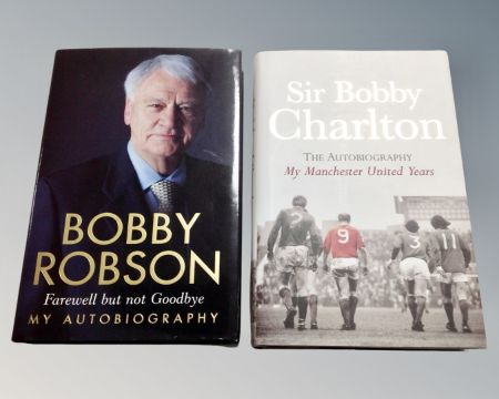 Two football autobiographies, Bobby Robson Farewell but not Goodbye and Sir Bobby Charlton My Manchester United Years, both signed.