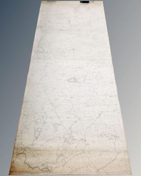 A vintage 20th century rolled map from Chollerton to Woodside, Northumberland, issued by Ordnance Survey Office Southampton.