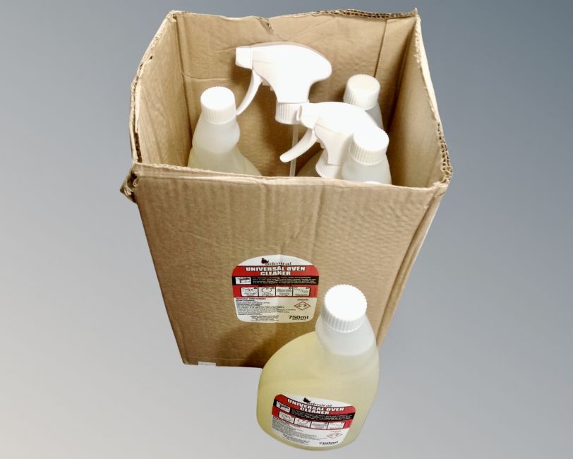 Six 750ml bottles of Admiral universal oven cleaner.