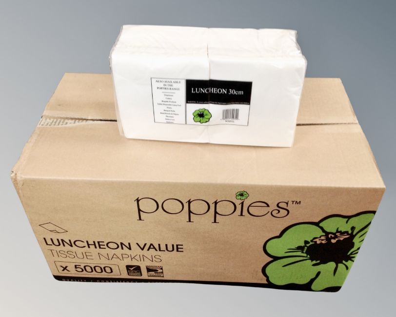 15000 Poppy's Quality white paper napkins, 30cm by 30cm. (3 boxes)