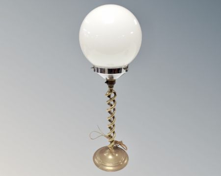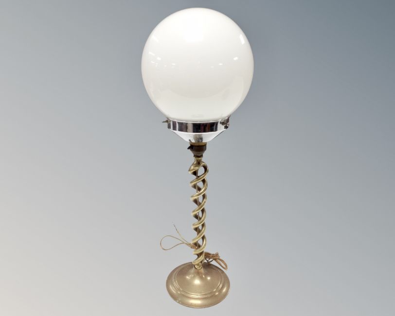 Victorian brass candlestick converted to a table lamp with glass shade