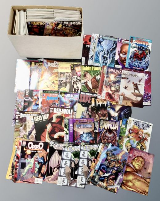 A box containing approximately 200 late 20th to early 21st century comics including Team 7, Shadowhawk, Stormwatch, Powerfist and Ironman, Agents of Atlas, Warlord etc.