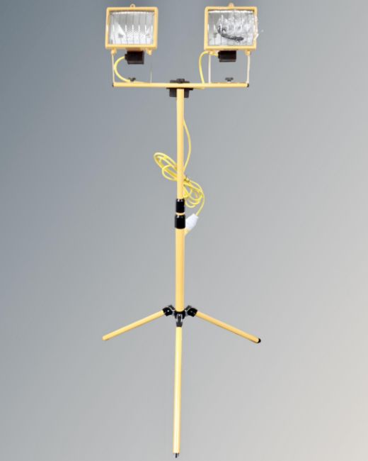 A Briticent Sight electricals twin 500w floodlight with 3 meter cable, on tripod, boxed.