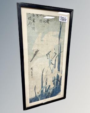 A. H. Findley : York Minster, watercolour, signed, 39cm by 27cm, framed, together with a Japanese wood cut depicting a white bird.