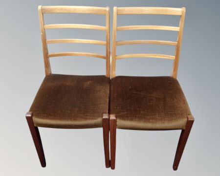 A 20th century oval teak G-Plan extending dining table and four ladder back chairs