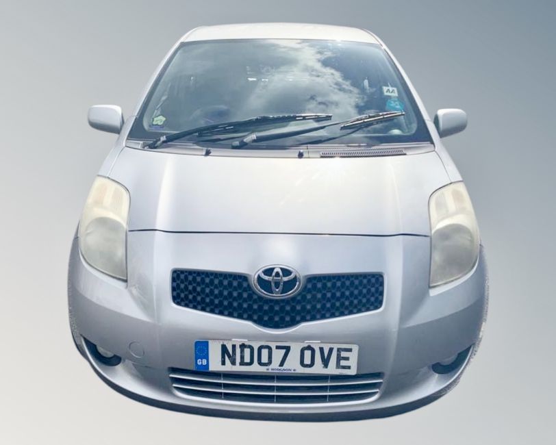 2007 Toyota Yaris T Spirit three-door hatchback, silver, petrol, manual, registration ND07 OVE, first registered 28.3.2007, 1296CC, 128,066 miles, one former keeper on V5C, one key, service history, MOT expired 10 March 2023.