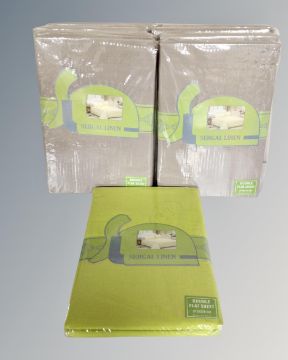 Nine Sehgal linen double flat sheets, sealed and new.