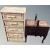 A concertina sewing box on legs together with a wicker five drawer chest.
