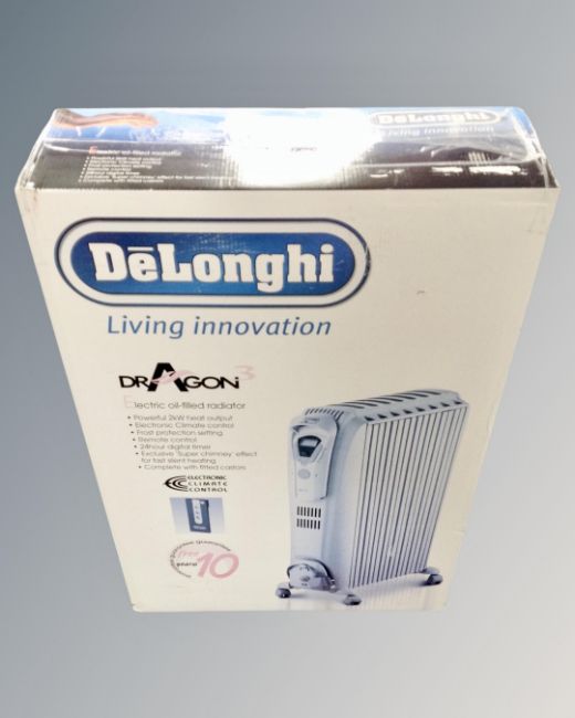 A Delonghi Dragon 3 oil filled radiator, boxed.