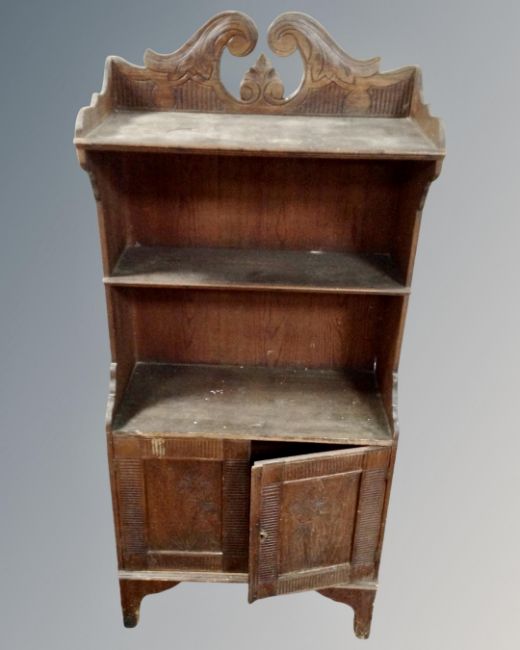 A set of antique carved oak bookshelves