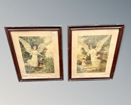 A pair of chromolithographic prints depicting angels, each 37cm by 50cm