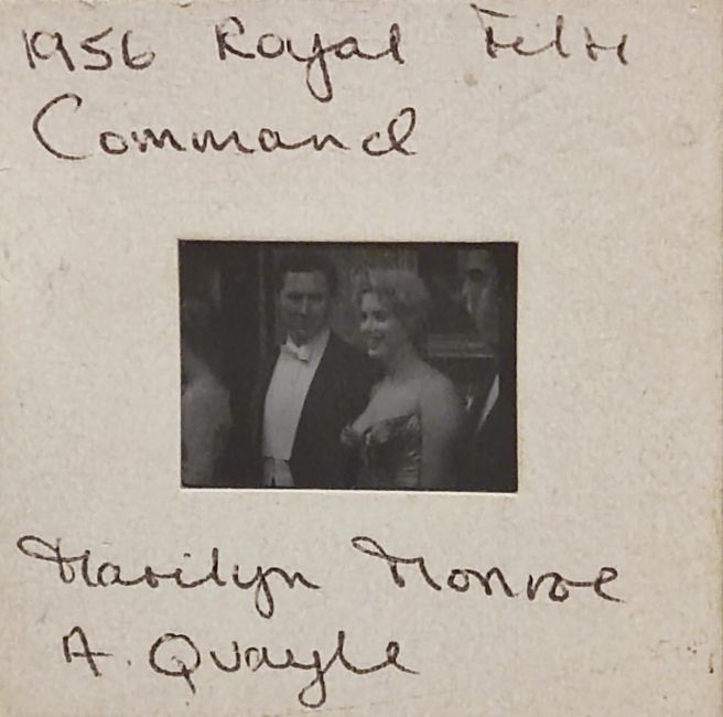 Vintage negative of Marilyn Monroe meeting Queen Elizabeth II. On the 29 October 1956 Marilyn attended the Royal Command Performance of Powell and Pressburger's war film 'The Battle of the River Plate' at the Empire Cinema in Leicester Square.