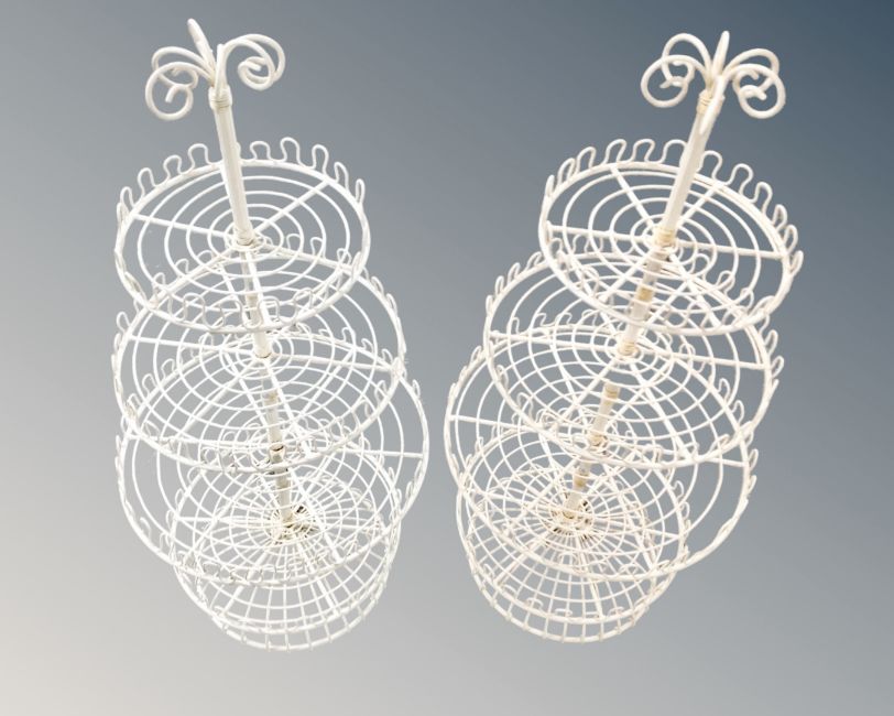 A pair of wire metal four tier cake stands