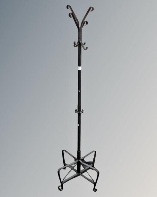 A contemporary metal hat and coat stand