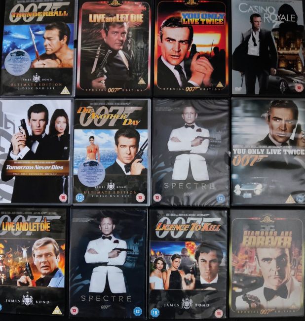 James Bond - 'No Time to Die' movie posters and a selection of Bond DVD's.