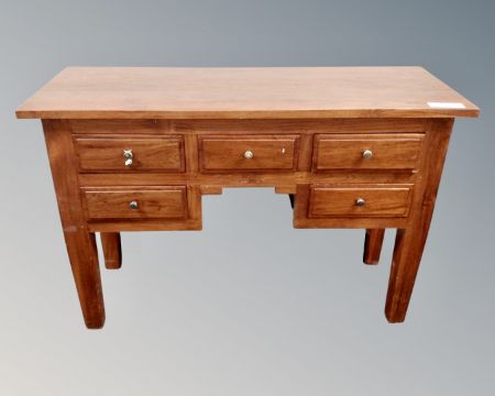 A hardwood five drawer console table