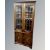 A pair of double leaded glass door corner cabinets fitted with cupboards below, in an oak finish.