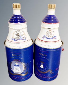 Two Bells Old Scotch Whisky Royal decanters to commemorate the Birth of Princess Beatrice and Princess Eugenie in presentation tins, sealed.