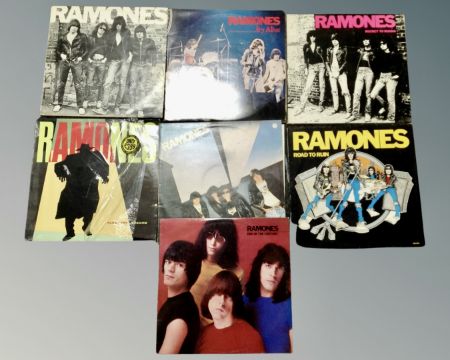 A crate of seven Ramones vinyl LP's including End of the Century, Leave Home, Road to Ruin etc