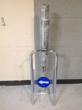 A metal 'No entry' bollard