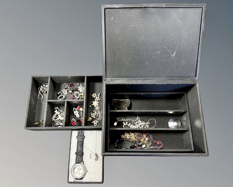 A jewellery box containing costume jewellery, white metal chains etc