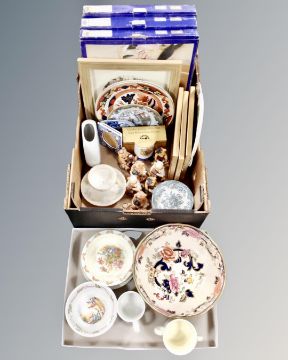 A box of gift home four piece dining sets, Ringtons ceramics, Masons bowl, Bunnykins etc
