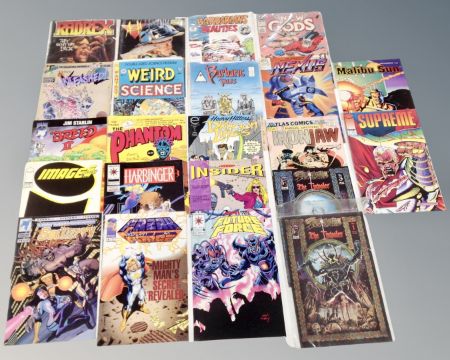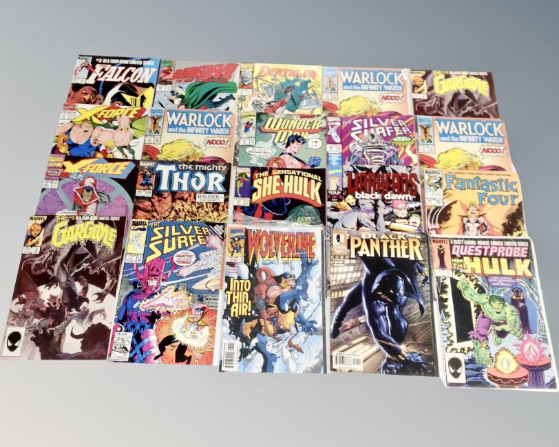 Approximately 150 assorted Marvel and DC comics including Where Monsters Dwell, Captain America, Silver Surfer, Fantastic Four, Black Panther, Supersoldier, Spawn, Alien Legion, Breed, Spider-Man, The Mighty Avengers, Secrets of the Haunted House, Batlash, Wonder Woman etc.