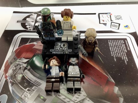 A Lego Star Wars 75243 Slave I 20th Anniversary edition with mini-figures, box and instructions.
