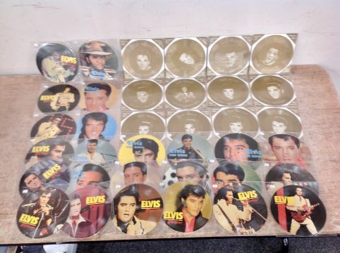 A Elvis Presley complete set of 12 sealed Golden Memories picture disc 45s, an Elvis Presley Forever exclusive set of 12 photo disc 45s and a vintage Elvis Presley The King exclusive set of 12 photo disc 45s.