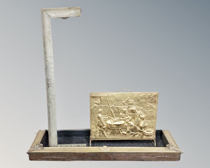 A 19th century Art Nouveau copper and brass fire curb together with a further fire curb and a brass embossed fire screen.