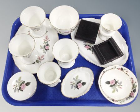 A tray containing 12 pieces of Wedgwood Hathaway Rose cabinet china.
