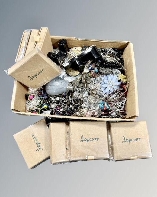 New torque bracelets, box of collectables including mini silver wire Chinese shoes etc