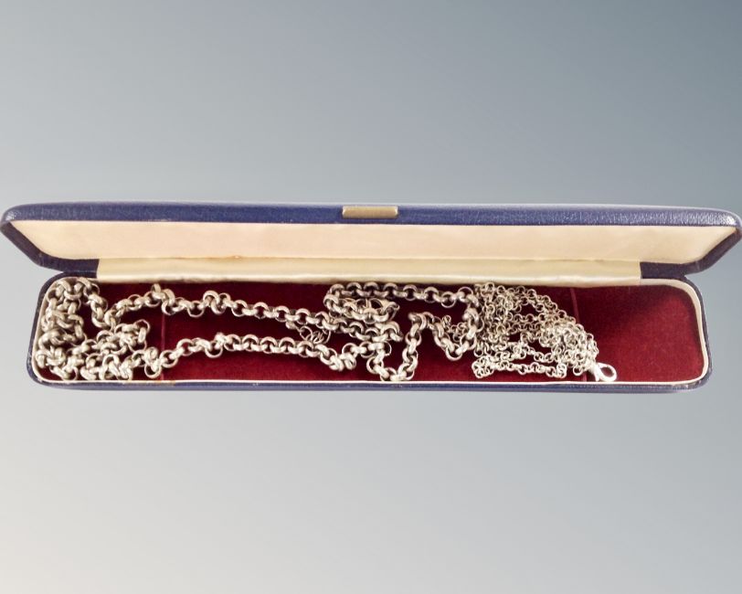Two with white metal his and hers Belcher chains
