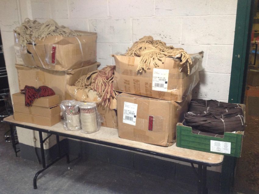 Six boxes of upholsterer's fabric trim