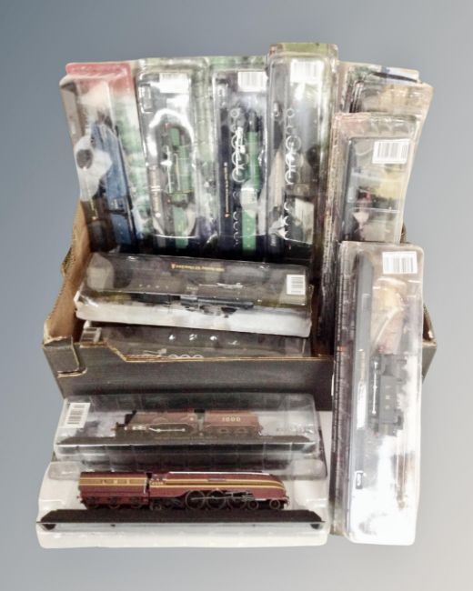 A box of die cast model locomotives