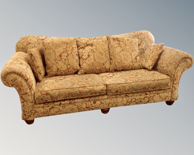 A Duresta three seater settee in Paisley fabric, approximately 215cm wide by 104cm deep by 90cm high.