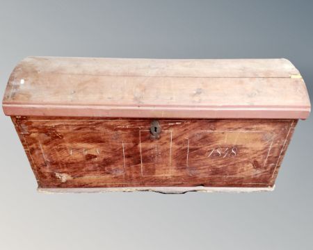 A 19th century pine dome topped chest dated 1848 (a/f)