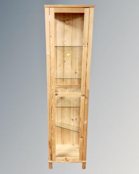 A contemporary pine and glass sentry door display cabinet with shelves