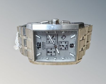 A Citizen Eco-Drive gentleman's wrist watch, on stainless steel bracelet strap.
