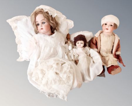 A Simon and Halbig porcelain headed doll, together with two further antique dolls