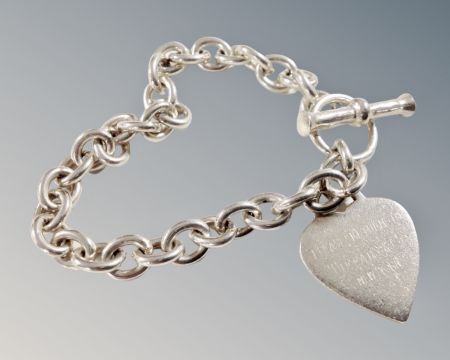 A heavy T-bar bracelet with 'Ghost' heart padlock