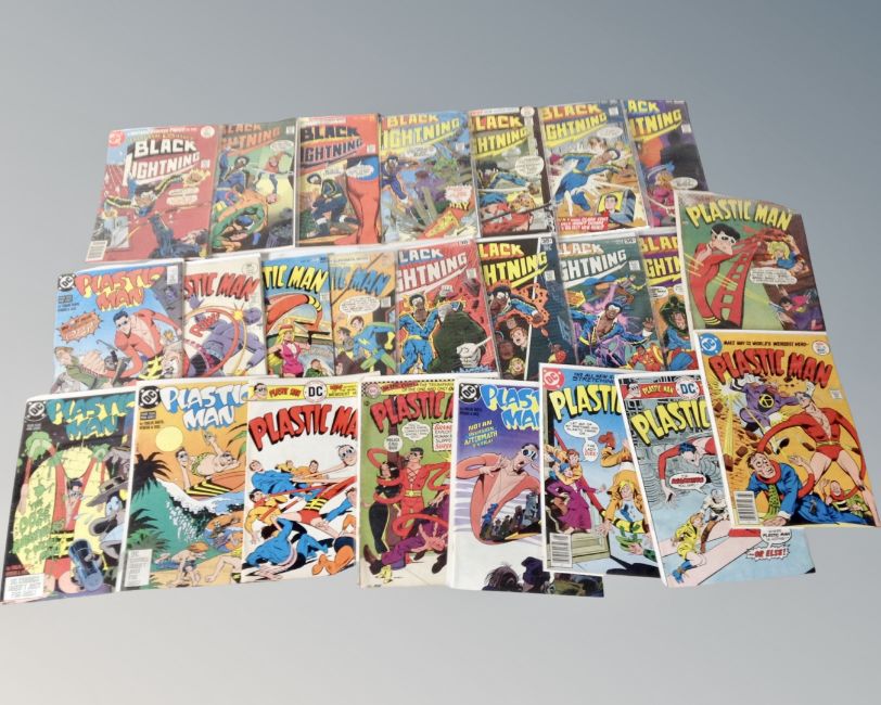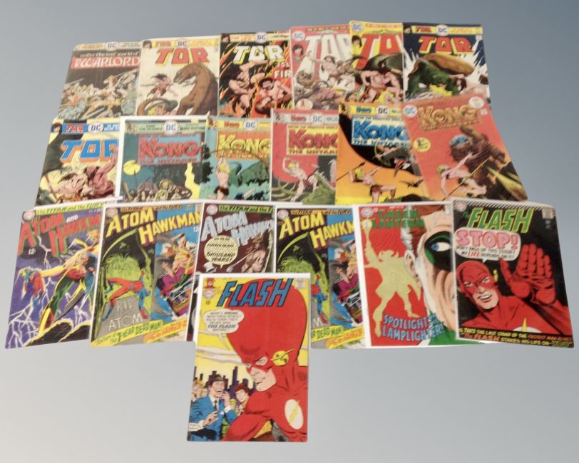A tray of DC comics to include The Flash, Green Lantern, The Atom, Hawke Man 12¢ and 15¢ covers, Black Lightning and Plastic Man