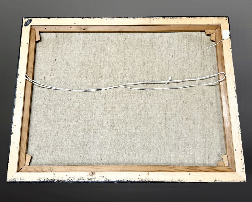 Twentieth century Continental School: Figures working, oil on canvas, 91 cm x 69 cm, framed.