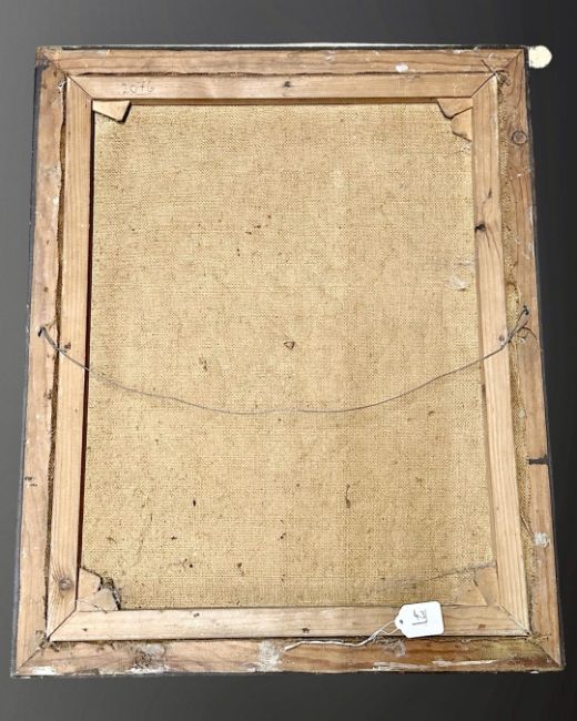 Twentieth century Continental School: Portrait of a man sewing, oil on canvas, 45 cm x 56 cm, indistinctly signed, framed.