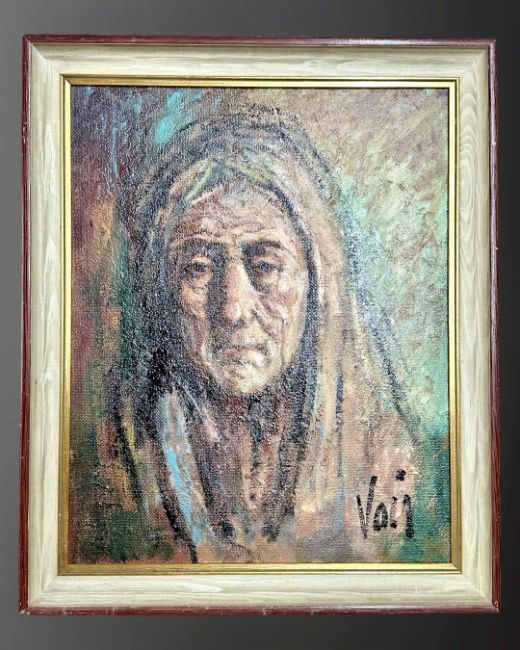 Twentieth century Continental School: Portrait of an elderly lady, oil on board, 39 cm x 39 cm, indistinctly signed, framed.