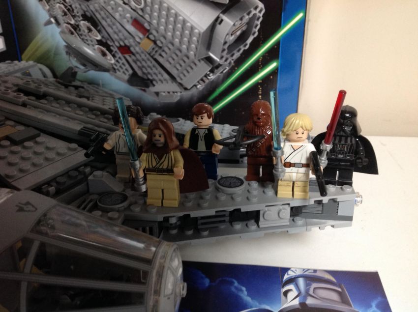 A Lego Star Wars 7965 Millenium Falcon, with box and instructions.