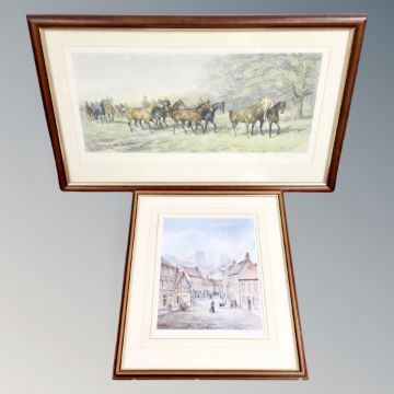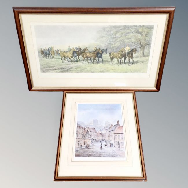 A Hayward Hardy signed horse racing print in frame and mount together with a further signed print of old Durham in frame and mount.