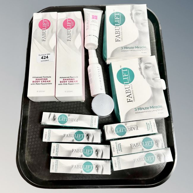 A tray containing Fabulift body shaping cream, 3 minute miracle serum, eye lifting serum etc. (14)