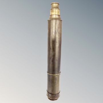 An antique brass nautical telescope.